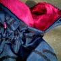 Der Pompadour begleitet Sie auf eine nostalgische Zeitreise in die Vergangenheit. Moderne Stoffe unterschiedlichster Wirkung (Leder, Reflektorstoff, Samt, Seide, Baumwolle, Webfell, Filz, Spitze, gecrashte Stoffe, gummiertes, gewachstes Material u.v.m.) bieten dazu einen spannenden Kontrast und sorgen zusammen mit dem abnehmbaren Trageriemen für alltagstauglichen Tragekomfort.